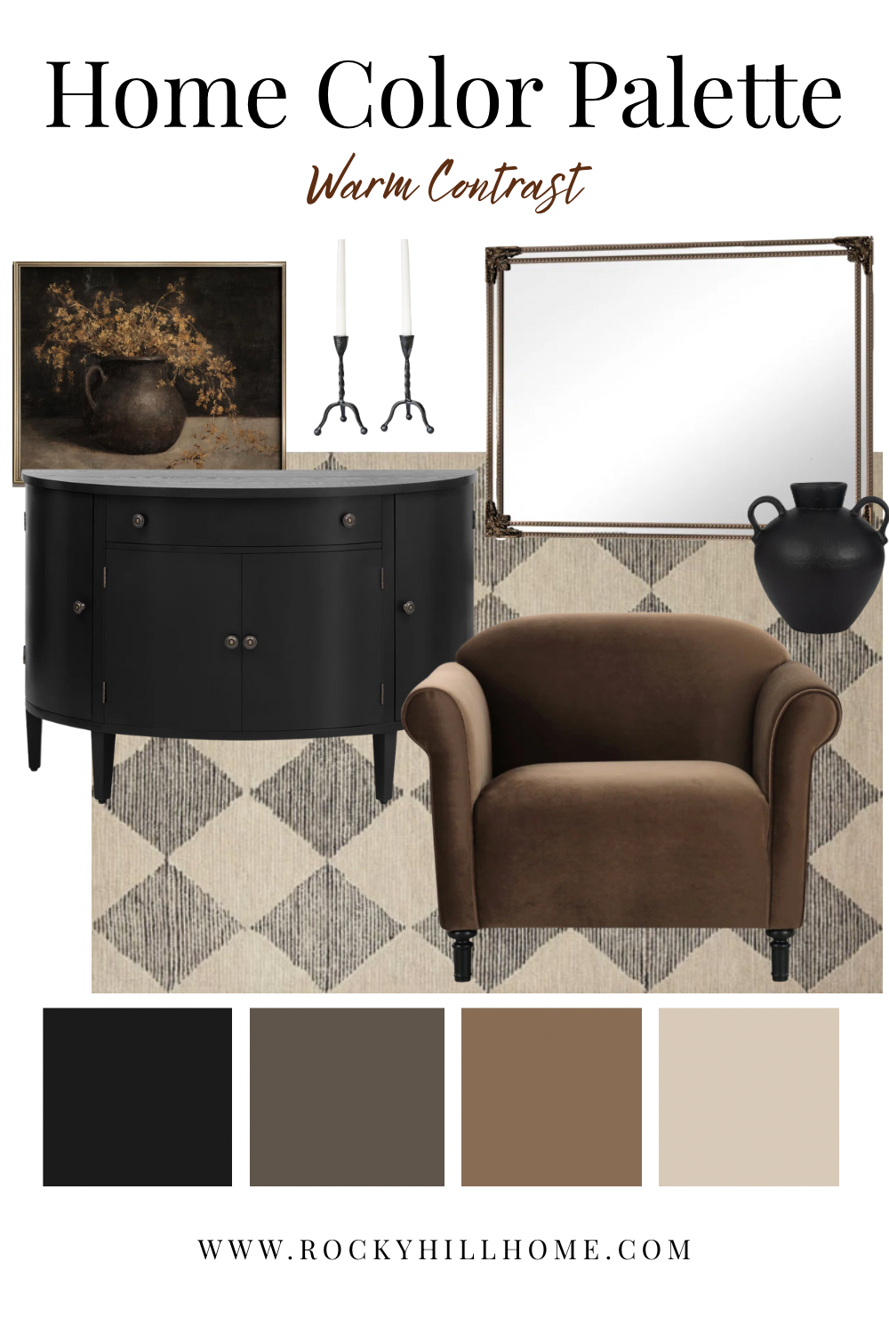 A brown tonal palette creates warmth and depth in the living room. See how espresso, camel, and taupe work together for a moody yet timeless look with this living room mood board