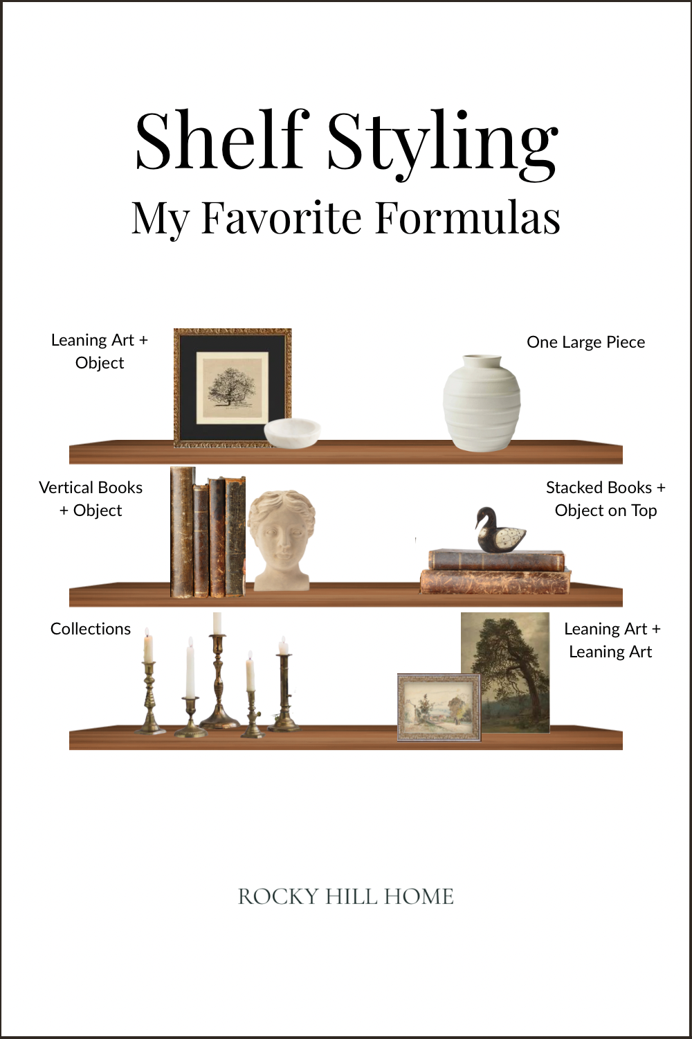 Here are the simplest formulas for shelf styling that feels layered, but never fussy: