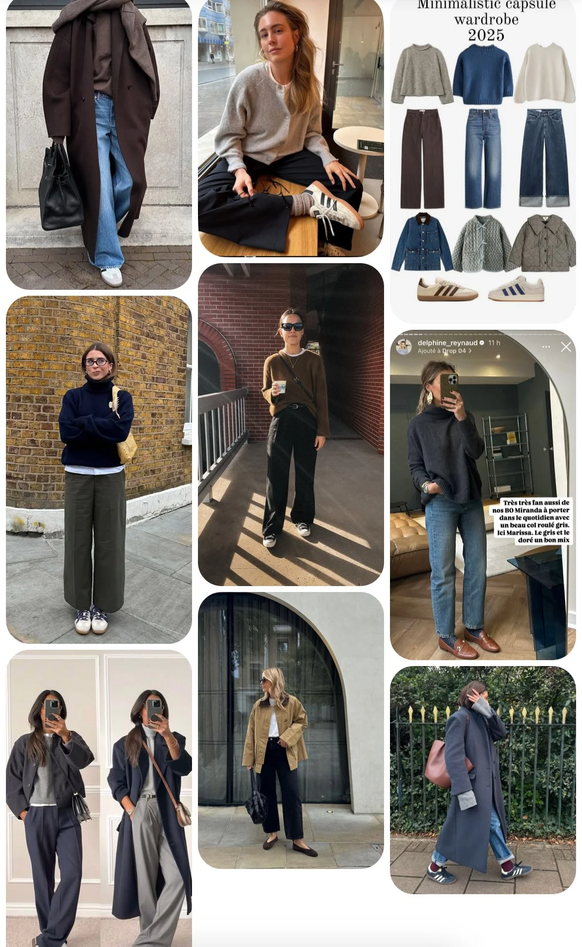 Going back to my fashion Pinterest board, you’ll notice that all of these outfits are a mix of casual and formal, with the only real pattern coming from the Adidas stripes on the shoes (which apparently I’m obsessed with). Sneakers with trousers, tailored coat with jeans, I clearly love this style contrast.